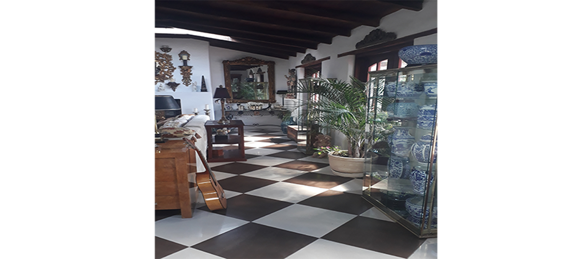 A gracious, airy, Spanish/Mediterranean-style house consisting of 3 large, high-ceiling bedrooms, 2 tiled baths and an extra-large living/dining ‘sala’ with 6 French doors opening onto 2 large, tiled patios flanking each side of the living room. One patio has a 55-ft. lap/exercise pool flanked by a 60 ft. pergola supported by 6 large white columns.